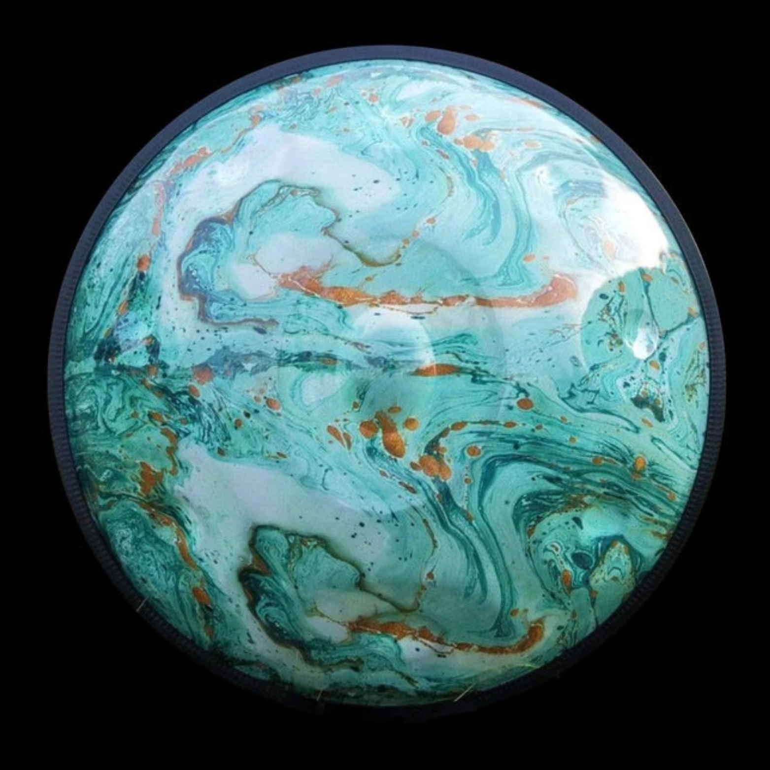 These handpans are hydro-coated which gives them their remarkable and distinct color profiles, unlike any other handpans on the market. Please note that there can be a slight decrease in the sustain due to this process as compared with the non-hydro coated models, but their sustain is still otherworldly!